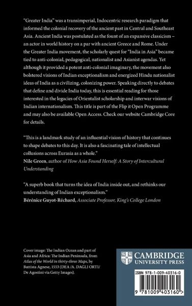 Introduction: Looking for India in Asia Part I. The knowledge networks of Greater India: 1. Shifting horizons: Buddhist archaeology and the quest for Serindia 2. Finding India in Southeast Asia: Early Indocentric approaches 3. Transimperial knowledge networks and the research paradigm of Greater India 4. British India and the quest for a new Orientalism: The Greater India Society 5. 'Colonial art' and the reconfiguration of aesthetic space Epilogue: The knowledge networks of Greater India in the postcolonial era Part II. The interwar politics of Greater India: 6. Connecting Orientalism and internationalism: Tagore, Indian Asianism and the historical imagination 7. Disawoving Indian exceptionalism: Sarkar, 'Modern Greater India' and the Hindu nationalist imagination 8. A new Nalanda in Bolpur: Visva-Bharati and the quest for a global humanism Conclusion: Greater India as a political discourse in the interwar period Conclusion Epilogue: The afterlives of Greater India Bibliography Index.