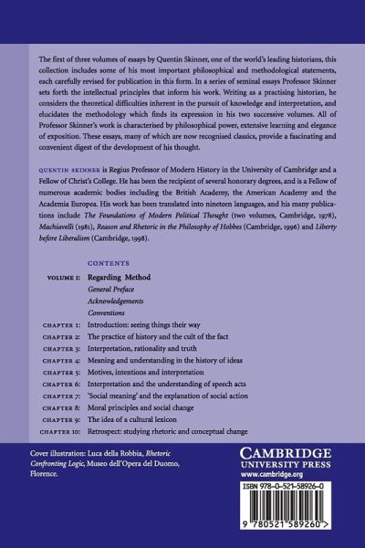 The first of three volumes of essays by Quentin Skinner, one of the world's leading intellectual historians. This collection includes some of his most important philosophical and methodological statements written over the past four decades, each of which has been carefully revised for publication in this form.