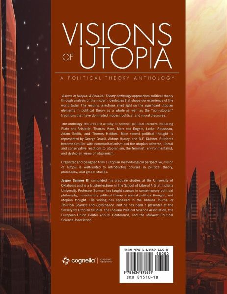 Visions of Utopia: A Political Theory Anthology approaches political theory through analysis of the modern ideologies that shape our experience of the world today. The reading selections shed light on the significant utopian elements in political theory as a whole as well as the "non-utopian" traditions that have dominated modern political and moral discourse. The anthology features the writing of seminal political thinkers including Plato and Aristotle, Thomas More, Marx and Engels, Locke, Rousseau, Adam Smith, and Thomas Hobbes. More recent political thought is represented by George Orwell, Aldous Huxley, and B.F. Skinner. Students become familiar with communitarianism and the utopian universe, liberal and conservative reactions to utopianism, the feminist, environmentalist, and dystopian views of utopianism. Organized and designed from a utopian methodological perspective, Vision of Utopiais well-suited to introductory courses in political theory, philosophy, and global studies. Jasper Sumner III completed his graduate studies at the University of Oklahoma and is a trustee lecturer in the School of Liberal Arts at Indiana University. Professor Sumner has taught courses in contemporary political philosophy, introductory political theory, classical political thought, and utopian thought. His writing has appeared in the Indiana Journal of Political Science and Governance, and he has been a presenter at the Society for Utopian Studies, the Southwestern Social Science Association, the Western Political Science Association, and the Midwest Political Science Association.