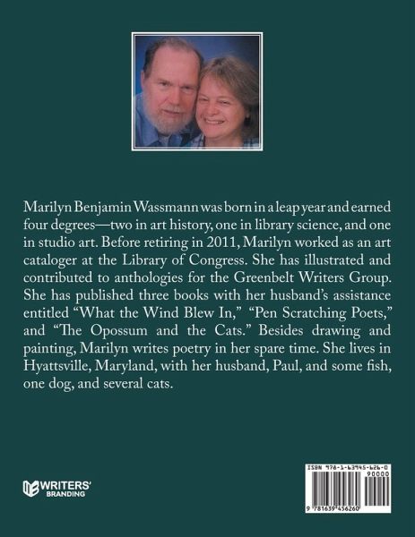 Marilyn Benjamin Wassmann was born in a leap year and earned four degrees¿two in art history, one in library science, and one in studio art. Before retiring in 2011, Marilyn worked as an art cataloger at the Library of Congress. She has illustrated and contributed to anthologies for the Greenbelt Writers Group. She has published three books with her husband's assistance entitled "What the Wind Blew In," "Pen Scratching Poets," and "The Opossum and the Cats." Besides drawing and painting, Marilyn writes poetry in her spare time. She lives in Hyattsville, Maryland, with her husband, Paul, and some fish, one dog, and several cats.