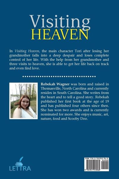 In Visiting Heaven, the main character Tori after losing her grandmother falls into a deep despair and loses complete control of her life. With the help from her grandmother and three visits to heaven, she is able to get her life back on track and even find love.