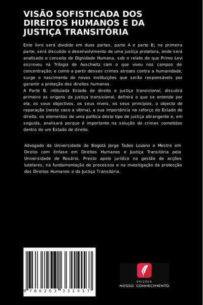 Este livro será dividido em duas partes, parte A e parte B; na primeira parte, será discutido o desenvolvimento de uma justiça protetora, onde será analisado o conceito de Dignidade Humana, sob o relato do que Primo Levi escreveu na Trilogia de Auschwitz com o que viveu nos campos de concentração; e como a partir desses crimes atrozes contra a humanidade, surge o nascimento de novas instituições que serão responsáveis por garantir a proteção dos direitos humanos. A Parte B, intitulada Estado de direito e justiça transicional, discutirá primeiro as origens da justiça transicional, definirá o que se entende por ela, os seus objectivos, os seus níveis, os seus princípios, o objecto de reparação (neste caso a vítima), a sua importância no reforço do Estado de direito, os elementos de uma política deste tipo de justiça abrangente e, em seguida, analisará porque é importante na solução de crimes cometidos dentro de um Estado de direito.