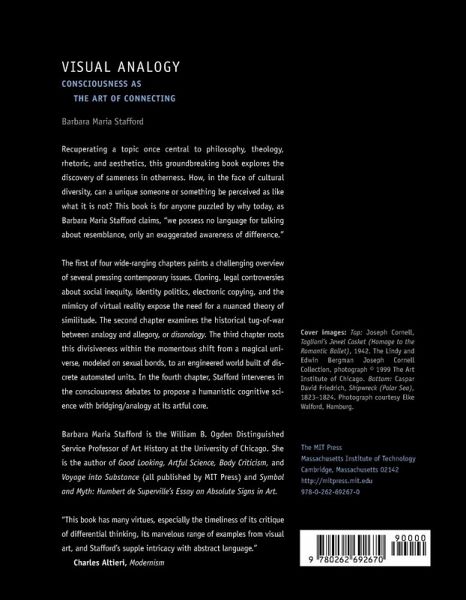 A groundbreaking book exploring the discovery of sameness in otherness. Recuperating a topic once central to philosophy, theology, rhetoric, and aesthetics, this groundbreaking book explores the discovery of sameness in otherness. Analogy poses an intriguingly ancient and modern conundrum. How, in the face of cultural diversity, can a unique someone or something be perceived as like what it is not? This book is for anyone puzzled by why today, as Barbara Maria Stafford claims, "we possess no language for talking about resemblance, only an exaggerated awareness of difference." Well-designed images, Stafford argues, reveal the mind's intuitive leaps to connect known with unknown experience. The first of four wide-ranging chapters paints a challenging overview of several pressing contemporary issues. Cloning, legal controversies about social inequity, identity politics, electronic copying, and the mimicry of virtual reality expose the need for a nuanced theory of similitude. The second examines the historical tug-of-war between analogy and allegory, or disanalogy. Stafford provocatively suggests that, since the Romantic Era, we have been living in polarizingly allegorical times. The third roots this divisiveness within the momentous shift from a magical universe, modeled on sexual bonds, to an engineered world built of discrete automated units. Finally, recent developments in computational brain research notwithstanding, major phenomenological questions about memory, emotion, intelligence, and awareness beckon. In the fourth chapter, Stafford intervenes in the consciousness debates to propose a humanistic cognitive science with bridging/analogy at its artful core.