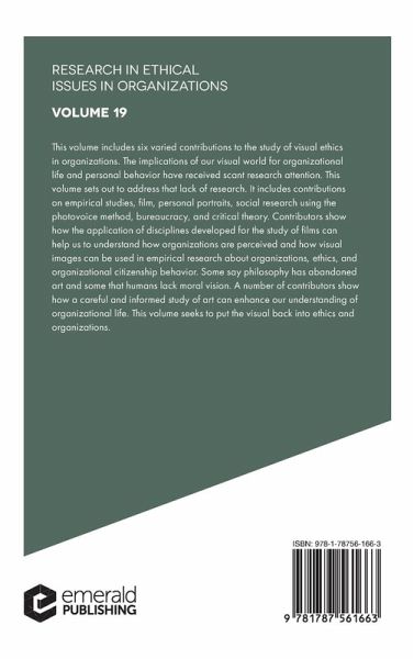This volume includes six varied contributions to the study of visual ethics in organizations. The implications of our visual world for organizational life and personal behaviour have received scant research attention. This volume sets out to address that lack of research.