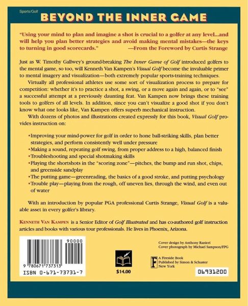 Just as W. Timothy Gallwey's ground-breaking "The Inner Game of Golf" introduced golfers to the mental game, so too, will Kenneth Van Kampen's "Visual Golf" become the invaluable primer to mental imagery and visualization--both expremely popular sports-training techniques. Virtually all professional athletes use some sort of visualization process to prepare for competition: whether it's to practice a shot, a swing, or a move again and again, or to "see" a successful attempt at a previously daunting feat. Van Kampen now brings these training tools to golfers of all levels. In addition, since you can't visualize a good shot if you don't know what one looks like, Van Kampen offers superb mechanical instruction. With dozens of photos and illustrations created expressly for this book, "Visual Golf" provides instruction on: improving your mind-power for golf in order to hone ball-striking skills, plan better strategies, and perform consistently well under pressure; making a sound, repeating golf swing, from proper address to a high, balanced finish; troubleshooting and special shotmaking skills; playing the shortshots in the "scoring zone"--pitches, the bump and run shot, chips, and greenside sandplay; the putting game--greenreading, the basics of a good stroke, and putting psychology; trouble play--playing from the rough, off uneven lies, through the wind, and even out of water. With an introduction by popular PGA professional Curtis Strange, "Visual Golf" is a valuable asset in every golfer's library.