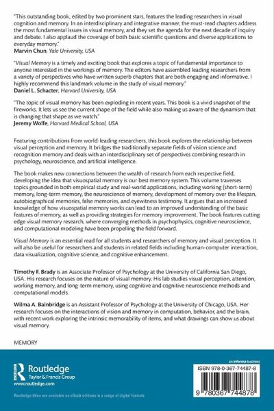 Timothy F. Brady is an Associate Professor of Psychology at the University of California San Diego, USA. His research focuses on the nature of visual memory. His lab studies visual perception, attention, working memory and long-term memory, using cognitive and cognitive neuroscience methods and computational models. Wilma A. Bainbridge is an Assistant Professor of Psychology at the University of Chicago, USA. Her research focuses on the interactions of vision and memory in computation, behavior, and the brain, with recent work exploring the intrinsic memorability of items, and what drawings can show us about visual memory.