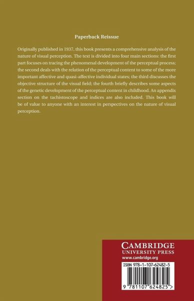 Originally published in 1937, this book presents a comprehensive analysis of the nature of visual perception. The text is divided into four main sections: the first part focuses on tracing the phenomenal development of the perceptual process; the second deals with the relation of the perceptual content to some of the more important affective and quasi-affective individual states; the third discusses the objective structure of the visual field; the fourth briefly describes some aspects of the genetic development of the perceptual content in childhood. An appendix section on the tachistoscope and indices are also included. This book will be of value to anyone with an interest in perspectives on the nature of visual perception.