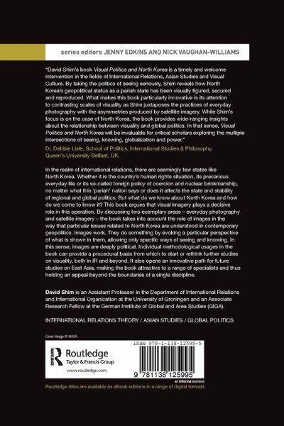In the realm of international relations, there are seemingly few states like North Korea. Whether it is the country's human rights situation, its precarious everyday life or its so-called foreign policy of coercion and nuclear brinkmanship, no matter what this 'pariah' nation says and does it affects the state and stability of regional and global politics. But what do we know about North Korea and how do we come to know it? This book argues that visual imagery plays a decisive role in this operation. By discussing two exemplary areas - everyday photography and satellite imagery - the book takes into account the role of images in the way that particular issues related to North Korea are understood in contemporary geopolitics. Images work. They do something by evoking a particular perspective of what is shown in them, allowing only specific ways of seeing and knowing. In this sense, images are deeply political. Individual methodological usages in the book can provide a procedural basis from which to start or rethink further studies on visuality, both in IR and beyond. It also opens an innovative path for future studies on East Asia, making the book attractive to a range of specialists and thus holding an appeal beyond the boundaries of a single discipline.