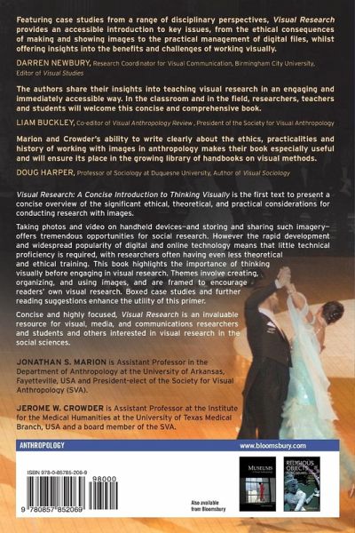 Visual Research: A Concise Introduction to Thinking Visually is the first text to present a concise overview of the significant ethical, theoretical, and practical considerations for conducting research with images. The capacity to take photos and video on handheld devices and the ability to store, post, and share such imagery online all offer tremendous opportunities for social research. The rapid development and popularity of such technology means that little technological proficiency is required, and even less theoretical and ethical consideration. This book provides an accessible introduction to doing visual research in the social sciences. Beginning with ethical considerations, this book highlights the importance of thinking visually before engaging in visual research. Further themes involve creating, organizing, and using images and are presented so as to help readers think about and work with their own visual data. Boxed case studies and further reading suggestions enhance the utility of this primer. Concise and highly focused, Visual Research will be an invaluable resource for visual, media, and communications students and researchers and others interested in visual research in the social sciences.