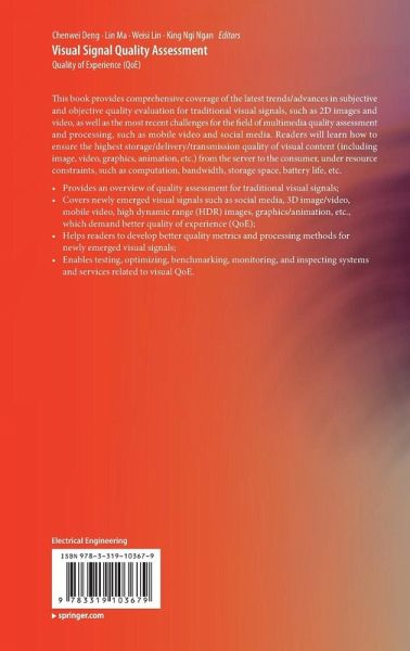This book provides comprehensive coverage of the latest trends/advances in subjective and objective quality evaluation for traditional visual signals, such as 2D images and video, as well as the most recent challenges for the field of multimedia quality assessment and processing, such as mobile video and social media. Readers will learn how to ensure the highest storage/delivery/ transmission quality of visual content (including image, video, graphics, animation, etc.) from the server to the consumer, under resource constraints, such as computation, bandwidth, storage space, battery life, etc.