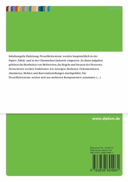 Prozeßleitsysteme werden hauptsächlich in der Papier-, Tabak- und in der Chemischen Industrie eingesetzt. Zu ihren Aufgaben gehören das Bearbeiten von Meßwerten, das Regeln und Steuern des Prozesses. Desweiteren werden Funktionen wie Anzeigen, Bedienen, Dokumentieren, Alarmieren, Melden und Kurvendarstellungen durchgeführt. Die Prozeßleitsysteme setzten sich aus mehreren Komponenten zusammen. Im einfachsten Fall bestehen sie aus einem Visualisierungssystem, einem Bussystem und einer prozeßnahen Komponente. Das Visualisierungssystem ist eine Software mit mehreren Optionen, die auf PC's und Industrierechnern installiert werden können und auf verschiedenen Betriebssystemen, wie z.B. Windows oder OS/2, laufen. Der Umfang der Software hängt dabei von dem zu visualisierenden Prozeß ab. Die Kommunikation mit prozeßnahen Komponenten und anderen Rechnersystemen erfolgt über eine Auswahl verschiedener Bussysteme oder direkte Verbindungen.