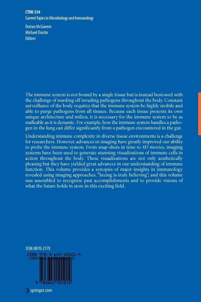 Researchers have used a variety of techniques over the past century to gain fun- mental insights in the field of immunology and, as technology has advanced, so too has the ability of researchers to delve deeper into the biological mechanics of immunity. The immune system is exceedingly complex and must patrol the entire body to protect us from foreign invaders. This requires the immune system to be highly mobile and adaptable - able to respond to diverse microbial challenges while maintaining the ability to distinguish self from a foreign invader. This latter feature is of great importance because the immune system is equipped with toxic mediators, and a failure in self/non-self discrimination can result in serious diseases. Fortunately, in most cases, the immune system operates within the framework of its elegant design and protects us from diverse microbial challenges without initiating disease. Because the immune system is not confined to a single tissue, a comprehensive understanding of immunity requires that research be conducted at the molecular, cellular, and systems level. Immune cells often find customized solutions to h- dling microbial insults that depend on the tissue(s) in which the pathogen is found.