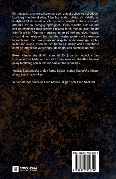 Förmågan att analysera, historisera och granska bilder och bildflöden kan idag inte överskattas. Men hur är det möjligt att förhålla sig analytiskt till de samtida och historiska visuella kulturer som ofta utmärks av en påtaglig spretighet? Inom visuella kulturstudier kan de empiriska möjligheterna tillåtas förbli många, givet att det framför allt är frågorna - snarare än ett på förhand givet material - som driver analysen framåt. Dessa frågor utmärks i sin tur av ett antal, återkommande antaganden. Till dessa hör att bilder, i vid bemärkelse, inte passivt speglar en viss tid eller vissa idéer och ideal. Bilder kan också bidra till att både forma och förändra idéer och ideal, däribland övertygelser, vanor och sätt att förhålla sig till världen. Hur bilder överhuvudtaget görs begripliga kan i sin tur inte särskiljas från hur det är möjligt att ta del av dem. I stadsrummet eller på en utställning? Via ett mikroskop eller en hemsida? I det privata sammanhanget eller i det offentliga? Metodologiskt finns det ofta anledning att förhålla olika typer av bilder till varandra, snarare än att underordna det analytiska intresset förment självklara inordningar mellan "högt" och "lågt", professionellt och amatörmässigt, centralt och perifert. Genom att bidra med ett aktivt och reflekterande förhållningssätt gentemot såväl samtida som historiska bildkulturer utgör visuella kulturstudier ett värdefullt bidrag till vetenskapliga undersökningar som uppehåller sig vid bildmaterial av olika slag. Boken vänder sig till dig som vill fördjupa och utveckla dina kunskaper om bilder och visuell kommunikation och som verkar eller planerar att verka inom sammanhang som präglas av bildanalys, bildproduktion eller bildförmedling. Genom empiriskt välförankrade texter ger boken analytiska redskap för att undersöka hur bilder har varit och är en del av att skapa, förmedla och befästa kunskap och erfarenheter, liksom hur bilder kan ge uttryck för värderingar, ideologier och estetiska normer. Boken inleds med en historiografisk introduktion till forskningsfältet visuella kulturstudier och följs av sex kapitel. I kapitlen analyseras mycket olika material - däribland gatukonst och modebild, porträttfotografi och hängningspraktiker. I varje kapitel ges konkreta exempel på hur olika analytiska perspektiv, metoder och teorier kan användas för att studera visuell kultur. Boken fungerar därmed som en brygga mellan teori och praktik och ger läsaren exempel på hur det är möjligt att arbeta med olika empiriska material och vad olika analytiska förhållningssätt kan bidra till.