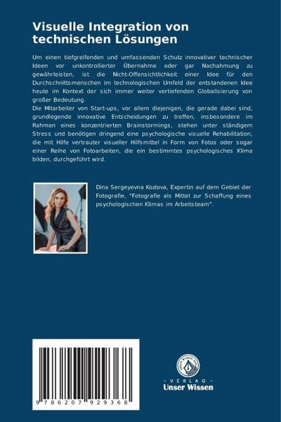 Um einen tiefgreifenden und umfassenden Schutz innovativer technischer Ideen vor unkontrollierter Übernahme oder gar Nachahmung zu gewährleisten, ist die Nicht-Offensichtlichkeit einer Idee für den Durchschnittsmenschen im technologischen Umfeld der entstandenen Idee heute im Kontext der sich immer weiter vertiefenden Globalisierung von großer Bedeutung.Die Mitarbeiter von Start-ups, vor allem diejenigen, die gerade dabei sind, grundlegende innovative Entscheidungen zu treffen, insbesondere im Rahmen eines konzentrierten Brainstormings, stehen unter ständigem Stress und benötigen dringend eine psychologische visuelle Rehabilitation, die mit Hilfe vertrauter visueller Hilfsmittel in Form von Fotos oder sogar einer Reihe von Fotoarbeiten, die ein bestimmtes psychologisches Klima bilden, durchgeführt wird.