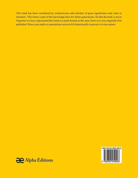 This book has been considered by academicians and scholars of great significance and value to literature. This forms a part of the knowledge base for future generations. So that the book is never forgotten we have represented this book in a print format as the same form as it was originally first published. Hence any marks or annotations seen are left intentionally to preserve its true nature.