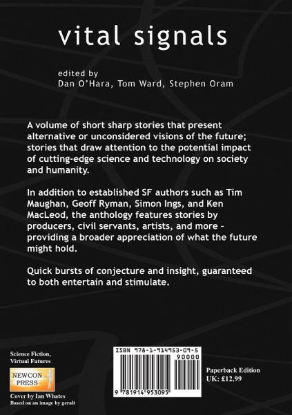 A volume of short sharp stories that present alternative or unconsidered visions of the future; stories that draw attention to the potential impact of cutting-edge science and technology for society and humanity. In addition to established SF authors such as Ken MacLeod, Tim Maughan, Geoff Ryman, Simon Ings, Jule Owen and David Gullen, the anthology features stories by producers, civil servants, artists, and more - providing a broader appreciation of what the future might hold. Quick bursts of conjecture and insight, guaranteed to both entertain and stimulate.
