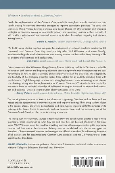 The strong push to use primary sources in teaching history and social studies creates a need among teachers for more information on what they are and how they can be used effectively in the classroom. Vital Witnesses meets this need by providing teachers with a comprehensive guide to primary sources and their use in the classroom.