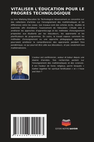 Le livre Vitalizing Education for Technological Advancement se concentre sur des collections d'articles sur l'enseignement des mathématiques et les différences entre les sexes. Les travaux sont des articles écrits, étudiés et examinés afin d'améliorer l'avancement de l'éducation. L'étude vise à améliorer les approches d'apprentissage et les méthodes d'enseignement proposées aux étudiants par les éducateurs, les apprenants et les planificateurs de programmes. En outre, le travail expose comment les méthodes d'enseignement ou une approche pédagogique appropriée pourraient améliorer la compréhension des apprenants pendant l'ère pandémique, ce qui pourrait être utile aux éducateurs, et pas seulement aux mathématiciens.
