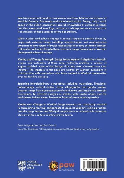 Warlpiri songs hold together the ceremonies that structure and bind social relationships, and encode detailed information about Warlpiri country, cosmology and kinship. Today, only a small group of the oldest generations has full knowledge of ceremonial songs and their associated meanings, and there is widespread concern about the transmission of these songs to future generations. While musical and cultural change is normal, threats to attrition driven by large-scale external forces including sedentarisation and modernisation put strain on the systems of social relationships that have sustained Warlpiri cultures for millennia. Despite these concerns, songs remain key to Warlpiri identity and cultural heritage. Vitality and Change in Warlpiri Songs draws together insights from senior Warlpiri singers and custodians of these song traditions, profiling a number of senior singers and their views of the changes that they have witnessed over their lifetimes. The chapters in this book are written by Warlpiri custodians in collaboration with researchers who have worked in Warlpiri communities over the last five decades. Spanning interdisciplinary perspectives including musicology, linguistics, anthropology, cultural studies, dance ethnography and gender studies, chapters range from documentation of well-known and large-scale Warlpiri ceremonies, to detailed analysis of smaller-scale public rituals and the motivations behind newer innovative forms of ceremonial expression. Vitality and Change in Warlpiri Songs ultimately uncovers the complexity entailed in maintaining the vital components of classical Warlpiri singing practices and the deep desires that Warlpiri people have to maintain this important element of their cultural identity into the future.