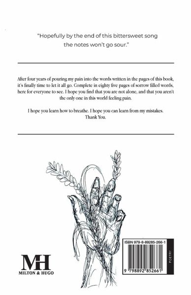 After four years of pouring my pain into the words written in the pages of this book, it's finally time to let it all go. Complete in eighty five pages of sorrow filled words, here for everyone to see. I hope you find that you are not alone, and that you aren't the only one in this world feeling pain. I hope you learn how to breathe. I hope you can learn from my mistakes. Thank You.