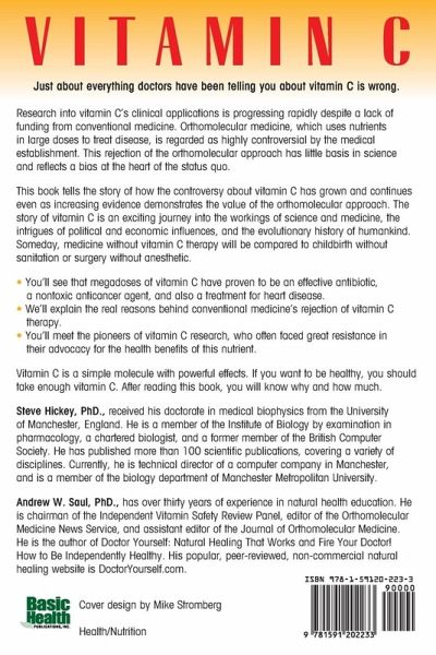 This book tells the story of how the controversy about vitamin C has grown and continues even as increasing evidence demonstrates the value of the orthomolecular approach. The story of vitamin C is an exciting journey into the workings of science and medicine, the intrigues of political and economic influences, and the evolutionary history of humankind.Vitamin C is a simple molecule with powerful effects. If you want to be healthy you should take enough vitamin C. After reading this book you will know why and how much.