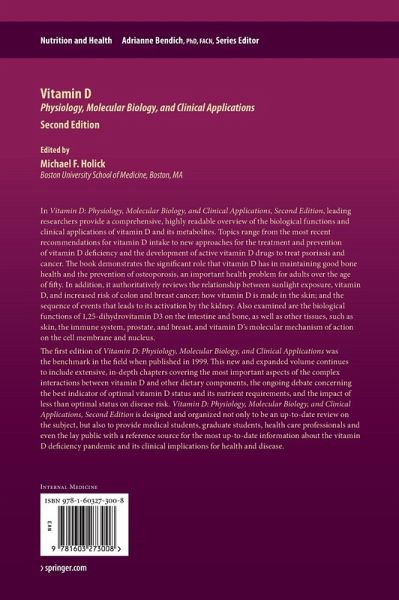 The first edition of Vitamin D: Physiology, Molecular Biology and Clinical Applications was the benchmark in the field when published in 1999. This new and expanded volume continues to include extensive, in-depth chapters covering the most important aspects of the complex interactions between vitamin D and other dietary components, the ongoing debate concerning the best indicator of optimal vitamin D status and its nutrient requirements, and the impact of less than optimal status on disease risk. Vitamin D: Physiology, Molecular Biology, and Clinical Applications, Second Edition is designed and organized not only to be an up-to-date review on the subject, but also to provide medical students, graduate students, health care professionals and even the lay public with a reference source for the most up-to-date information about the vitamin D deficiency pandemic and its clinical implications for health and disease.