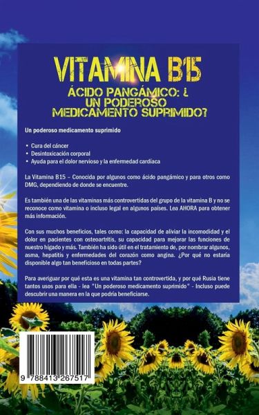 Un poderoso medicamento suprimido * Cura del cáncer * Desintoxicación corporal * Ayuda para el dolor nervioso y la enfermedad cardíaca La Vitamina B15 - Conocida por algunos como ácido pangámico y para otros como DMG, dependiendo de donde se encuentre. Es también una de las vitaminas más controvertidas del grupo de la vitamina B y no se reconoce como vitamina o incluso legal en algunos países. Lea AHORA para obtener más información. Con sus muchos beneficios, tales como: la capacidad de aliviar la incomodidad y el dolor en pacientes con osteoartritis, su capacidad para mejorar las funciones de nuestro hígado y más. También ha sido útil en el tratamiento de, por nombrar algunos, asma, hepatitis y enfermedades del corazón como angina. ¿Por qué no estaría disponible algo tan beneficioso en todas partes? Para averiguar por qué esta es una vitamina tan controvertida, y por qué Rusia tiene tantos usos para ella - lea "Un poderoso medicamento suprimido" - Incluso puede descubrir una manera en la que podría beneficiarse.