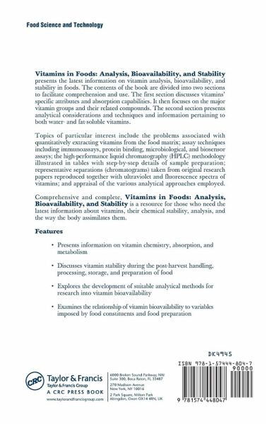 Vitamins in Foods: Analysis, Bioavailability, and Stability presents information on vitamin chemistry, absorption, and metabolism. The first section discusses the effects of food processing on vitamin retention, the physiology of vitamin absorption, and the physiochemical properties of individual vitamins. Factors affecting vitamin bioavailability are also discussed, including the development of suitable analytical methods. The second section describes the principles of analytical methods and provides detailed methods for depicting individual vitamins in foods. It includes discussion of vitamin stability from post-harvest handling to meal preparation.