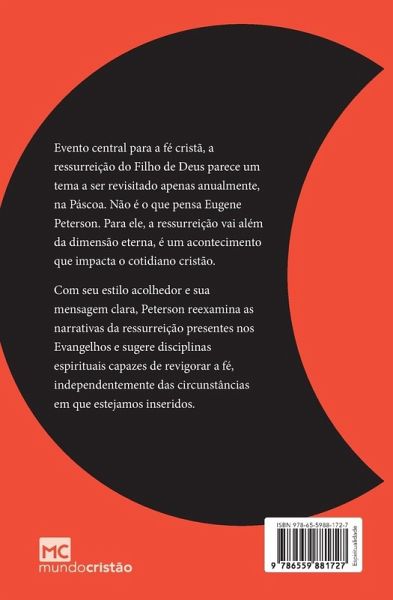 Evento central para a fé cristã, a ressurreição do Filho de Deus parece um tema a ser revisitado apenas anualmente, na Páscoa. Não é o que pensa Eugene Peterson. Para ele, a ressurreição vai além da dimensão eterna, é um acontecimento que impacta o cotidiano cristão. Com seu estilo acolhedor e sua mensagem clara, Peterson reexamina as narrativas da ressurreição presentes nos Evangelhos e sugere disciplinas espirituais capazes de revigorar a fé, independentemente das circunstâncias em que estejamos inseridos.