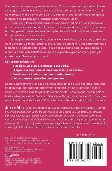 You may say that you love your family, your spouse, your church, or the Lord. You may also express love for more temporal things like a good cup of coffee, your home, or a nice dinner at your favorite restaurant. But it is rarer to truly say "I love my life!" It's common to be more frustrated with life than at peace with it, because the daily grind wears you down. Responsibilities and burdens become heavy and rob you of the happiness you're meant to have as a child of God. But you can be hopeful, learn to rise above your challenges, and be filled with wonder at what God might do every day. Written by #1 New York Times bestselling author Joyce Meyer, who has gone from heartache to happiness through Christ, this book is the key to shifting your perspective so that you may also relish every moment and every part of life. You will learn how to love life fully, in spite of your obstacles, and experience the happiness that is promised to you. Joyce will explain: Why you can't love life unless love is the central theme of it, Why your attitude affects your life more than any outside circumstances, How the love, help, and kindness you give away will come back to you immeasurably, How to look to the future and keep your joy, And so much more! God has already blessed you with a life to love -- and it's time to start LIVING A LIFE YOU LOVE.