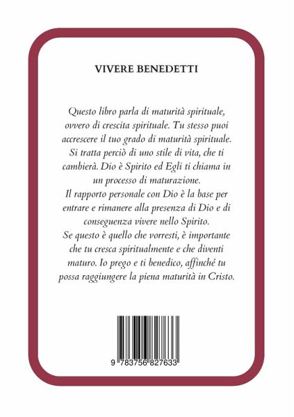 Questo libro parla di maturità spirituale, o vero di crescità spirituale. Tu stesso puoi accrescere il tuo grado di maturità spirituale. Puoi esaminare te stesso e prepararti all`eternità. Si tratta perciò di un stile di vita, che ti cambierà. Dio è spirito e Egli ti chiama in un processo di maturazione.