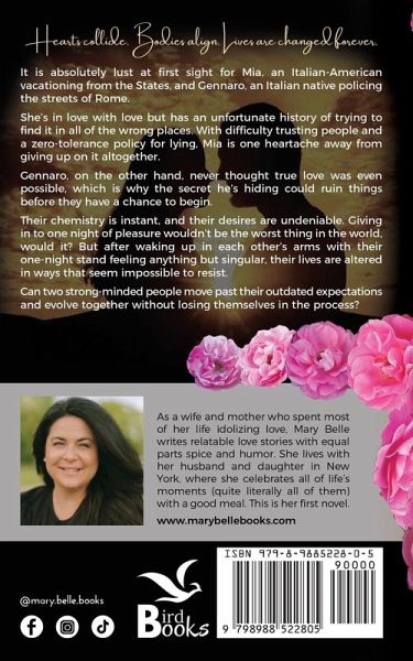 It is absolutely lust at first sight for Mia, an Italian-American vacationing from the States, and Gennaro, an Italian native policing the streets of Rome. She's in love with love but has an unfortunate history of trying to find it in all of the wrong places. With difficulty trusting people and a zero-tolerance policy for lying, Mia is one heartache away from giving up on it altogether. Gennaro, on the other hand, never thought true love was even possible, which is why the secret he's hiding could ruin things before they have a chance to begin. Their chemistry is instant, and their desires are undeniable. Giving in to one night of pleasure wouldn't be the worst thing in the world, would it? But after waking up in each other's arms with their one-night stand feeling anything but singular, their lives are altered in ways that seem impossible to resist. Can two strong-minded people move past their outdated expectations and evolve together without losing themselves in the process?