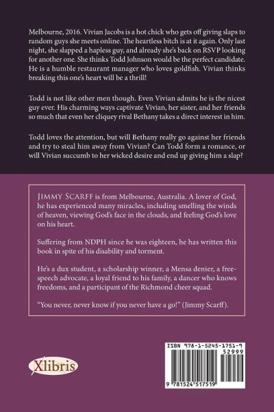 Melbourne, 2016. Vivian Jacobs is a hot chick who gets off giving slaps to random guys she meets online. The heartless bitch is at it again. Only last night, she slapped a hapless guy, and already she's back on RSVP looking for another one. She thinks Todd Johnson would be the perfect candidate. He is a humble restaurant manager who loves goldfish. Vivian thinks breaking this one's heart will be a thrill! Todd is not like other men though. Even Vivian admits he is the nicest guy ever. His charming ways captivate Vivian, her sister, and her friends so much that even her cliquey rival Bethany takes a direct interest in him. Todd loves the attention, but will Bethany really go against her friends and try to steal him away from Vivian? Can Todd form a romance, or will Vivian succumb to her wicked desire and end up giving him a slap?