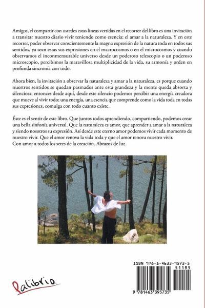 Amigos, el compartir con ustedes estas líneas vertidas en el recorrer del libro es una invitación a transitar nuestro diario vivir teniendo como esencia: el amar a la naturaleza. Y en este recorrer, poder observar conscientemente la magna expresión de la natura toda en todos sus sentidos, ya sean estas sus expresiones en el macrocosmos o en el microcosmos y cuando observamos el inconmensurable universo desde un poderoso telescopio o un poderoso microscopio, percibimos la maravillosa multiplicidad de la vida, su armonía y orden en profunda sincronía con todo. Ahora bien, la invitación a observar la naturaleza y amar a la naturaleza, es porque cuando nuestros sentidos se quedan pasmados ante esta grandeza y la mente queda absorta y silenciosa; entonces desde aquí, desde este silencio podemos percibir una energía creadora que mueve al vivir todo; una energía, una esencia que comprende como la vida toda en todas sus expresiones, comulga con todo cuanto existe. Éste es el sentir de este libro. Que juntos todos aprendiendo, compartiendo, podemos crear una bella sinfonía universal. Que la naturaleza es amor, que aprender a amar a la naturaleza y siendo nosotros su expresión. Así desde este eterno amor podemos vivir cada momento de nuestro vivir. Que el amor renova la vida toda y que el amor renova nuestro vivir. Con amor a todos los seres de la creación. Abrazos de luz.