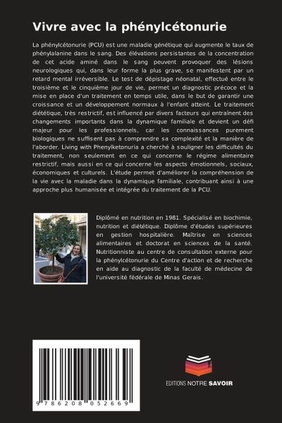 La phénylcétonurie (PCU) est une maladie génétique qui augmente le taux de phénylalanine dans le sang. Des élévations persistantes de la concentration de cet acide aminé dans le sang peuvent provoquer des lésions neurologiques qui, dans leur forme la plus grave, se manifestent par un retard mental irréversible. Le test de dépistage néonatal, effectué entre le troisième et le cinquième jour de vie, permet un diagnostic précoce et la mise en place d'un traitement en temps utile, dans le but de garantir une croissance et un développement normaux à l'enfant atteint. Le traitement diététique, très restrictif, est influencé par divers facteurs qui entraînent des changements importants dans la dynamique familiale et devient un défi majeur pour les professionnels, car les connaissances purement biologiques ne suffisent pas à comprendre sa complexité et la manière de l'aborder. Living with Phenylketonuria a cherché à souligner les difficultés du traitement, non seulement en ce qui concerne le régime alimentaire restrictif, mais aussi en ce qui concerne les aspects émotionnels, sociaux, économiques et culturels. L'étude permet d'améliorer la compréhension de la vie avec la maladie dans la dynamique familiale, contribuant ainsi à une approche plus humanisée et intégrée du traitement de la PCU.