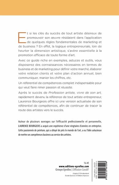 Et si les clés du succès de tout artiste désireux de promouvoir son oeuvre résidaient dans l'application de quelques règles fondamentales de marketing et de business ? En effet, la logique entrepreneuriale, loin de heurter la dimension artistique, s'avère essentielle à la promotion efficace de toute forme d'art.Avec ce guide riche en exemples, astuces et outils, vous disposerez des connaissances nécessaires en termes de business et de marketing pour définir votre marché, élaborer votre relation clients et votre plan d'action annuel, bien communiquer, manier les chiffres, etc.Un référentiel de compétences complet indispensable pour qui veut faire rimer passion et réussite.Après le succès de Profession artiste, vivre de son art, rapidement devenu la référence de tout artiste entrepreneur, Laurence Bourgeois offre ici une version actualisée de son référentiel de compétences, afin de continuer de tracer la route des artistes vers le succès.