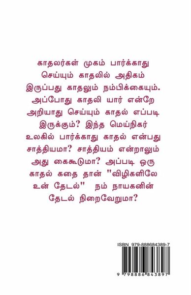 Kadhalargal mugam parkadhu seiyum kadhalil adhigam irupadhu nambikaiyum kadhalum. appothu kadhali yaar endrae ariyadhu seiyum kadhal eppadi irukum? indha meinigar ulagakil paarkadhu kadhal enbadhu saathiyama? saathiyam endralum kai kooduma?appadi oru kadhal kadhai than " VILIGALILAE UN THEDAL "