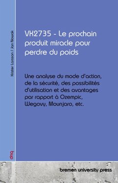 L'obésité est considérée comme l'un des plus grands défis de santé publique de notre époque. Avec des médicaments comme Ozempic, Wegovy et Mounjaro, de nouvelles approches thérapeutiques pour une réduction efficace du poids ont déjà obtenu d'énormes succès. Mais aujourd'hui, l'attention se porte sur une substance active, le VK2735, qui est considérée comme une évolution prometteuse de cette classe de médicaments. Ce livre propose une étude scientifique complète du VK2735 et met en lumière tous les aspects pertinents : son mode d'action sur le métabolisme, son influence sur les mécanismes de la faim et de la satiété ainsi que ses avantages potentiels par rapport aux agonistes établis des récepteurs GLP-1. En quoi l'efficacité, la tolérance et la sécurité du VK2735 sont-elles différentes ? Quels progrès ont été réalisés dans le développement clinique et quand le nouveau médicament sera-t-il disponible ? À l'aide d'études et d'analyses actuelles, il est démontré de manière compréhensible si le VK2735 a le potentiel d'introduire la prochaine révolution dans le domaine de la perte de poids médicamenteuse. Un must pour tous ceux qui souhaitent se pencher de manière approfondie sur les derniers développements dans le traitement de l'obésité.