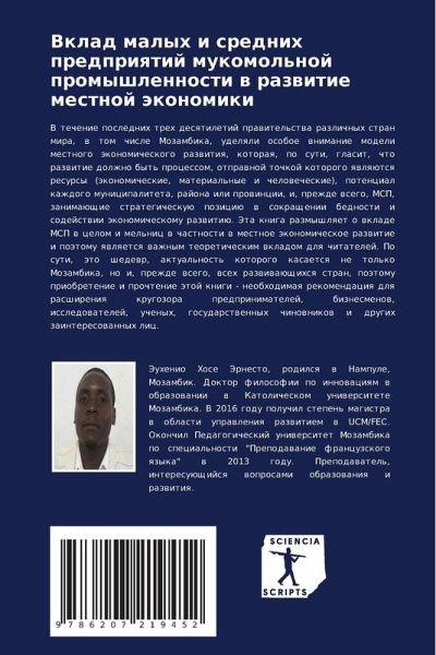 V techenie poslednih treh desqtiletij prawitel'stwa razlichnyh stran mira, w tom chisle Mozambika, udelqli osoboe wnimanie modeli mestnogo äkonomicheskogo razwitiq, kotoraq, po suti, glasit, chto razwitie dolzhno byt' processom, otprawnoj tochkoj kotorogo qwlqütsq resursy (äkonomicheskie, material'nye i chelowecheskie), potencial kazhdogo municipaliteta, rajona ili prowincii, i, prezhde wsego, MSP, zanimaüschie strategicheskuü poziciü w sokraschenii bednosti i sodejstwii äkonomicheskomu razwitiü. Jeta kniga razmyshlqet o wklade MSP w celom i mel'nic w chastnosti w mestnoe äkonomicheskoe razwitie i poätomu qwlqetsq wazhnym teoreticheskim wkladom dlq chitatelej. Po suti, äto shedewr, aktual'nost' kotorogo kasaetsq ne tol'ko Mozambika, no i, prezhde wsego, wseh razwiwaüschihsq stran, poätomu priobretenie i prochtenie ätoj knigi - neobhodimaq rekomendaciq dlq rasshireniq krugozora predprinimatelej, biznesmenow, issledowatelej, uchenyh, gosudarstwennyh chinownikow i drugih zainteresowannyh lic.