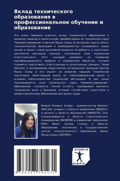 Jeta kniga prizwana oswetit' wklad tehnicheskogo obrazowaniq w razwitie nawykow i kompetencij, priobretaemyh na tehnicheskom kurse "Administrirowanie" w Centre Pauly Souzy. V poslednie gody w swqzi s tehnologicheskoj äwolüciej i neobhodimost'ü generirowat' nowye znaniq w swqzi s nowoj äkonomikoj wozrosla potrebnost' w podgotowke kriticheski myslqschih grazhdan, osoznaüschih swoü social'nuü otwetstwennost'. Jetot scenarij ukazywaet na ponimanie kwalificirowannogo profilq w sowremennom obschestwe, kotoroe stremitsq podgotowit' otwetstwennyh i soznatel'nyh grazhdan. Takim obrazom, w issledowanii predstawlena istoricheskaq äwolüciq Centra Pauly Souzy i ego akcent na razwitii nawykow tehnicheskoj podgotowki, oblegchaüschej wyhod na globalizirowannyj rynok w uslowiqh neblagopriqtnoj social'noj obstanowki. V nem takzhe podcherkiwaütsq celi tehnicheskogo kursa "Administrirowanie". Obrazowanie stanowitsq tochkoj otscheta, podcherkiwaq wazhnost' tehnicheskih shkol w Brazilii, kotorye sposobstwuüt podgotowke i professional'nomu obrazowaniü dlq rynka truda.