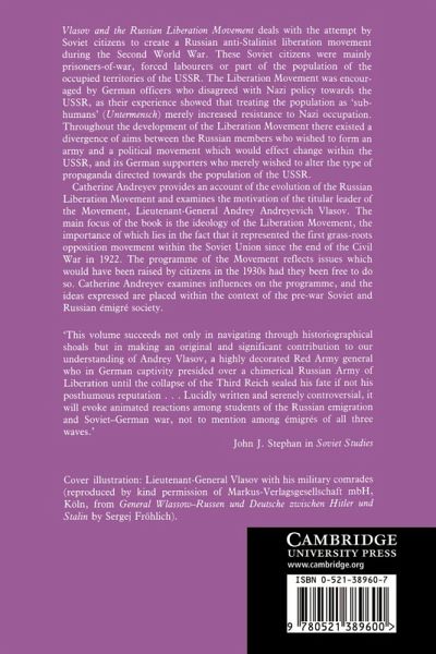 This book deals with the attempt by Soviet citizens to create an anti-Soviet Liberation Movement during the Second World War. The Movement's ultimate importance lies in its expression of grass-roots opposition to the Soviet regime, the first substantial such efflorescence since 1922. The motivation of its titular leader, Vlasov, is examined in detail, as is its fundamental ideology, analyzed within the context not merely of wartime but of prewar Soviet and Russian emigre society.