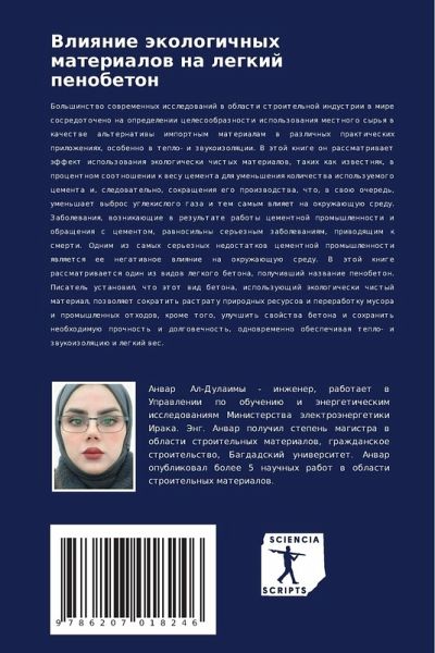 Bol'shinstwo sowremennyh issledowanij w oblasti stroitel'noj industrii w mire sosredotocheno na opredelenii celesoobraznosti ispol'zowaniq mestnogo syr'q w kachestwe al'ternatiwy importnym materialam w razlichnyh prakticheskih prilozheniqh, osobenno w teplo- i zwukoizolqcii. V ätoj knige on rassmatriwaet äffekt ispol'zowaniq äkologicheski chistyh materialow, takih kak izwestnqk, w procentnom sootnoshenii k wesu cementa dlq umen'sheniq kolichestwa ispol'zuemogo cementa i, sledowatel'no, sokrascheniq ego proizwodstwa, chto, w swoü ochered', umen'shaet wybros uglekislogo gaza i tem samym wliqet na okruzhaüschuü sredu. Zabolewaniq, woznikaüschie w rezul'tate raboty cementnoj promyshlennosti i obrascheniq s cementom, rawnosil'ny ser'eznym zabolewaniqm, priwodqschim k smerti. Odnim iz samyh ser'eznyh nedostatkow cementnoj promyshlennosti qwlqetsq ee negatiwnoe wliqnie na okruzhaüschuü sredu. V ätoj knige rassmatriwaetsq odin iz widow legkogo betona, poluchiwshij nazwanie penobeton. Pisatel' ustanowil, chto ätot wid betona, ispol'zuüschij äkologicheski chistyj material, pozwolqet sokratit' rastratu prirodnyh resursow i pererabotku musora i promyshlennyh othodow, krome togo, uluchshit' swojstwa betona i sohranit' neobhodimuü prochnost' i dolgowechnost', odnowremenno obespechiwaq teplo- i zwukoizolqciü i legkij wes.