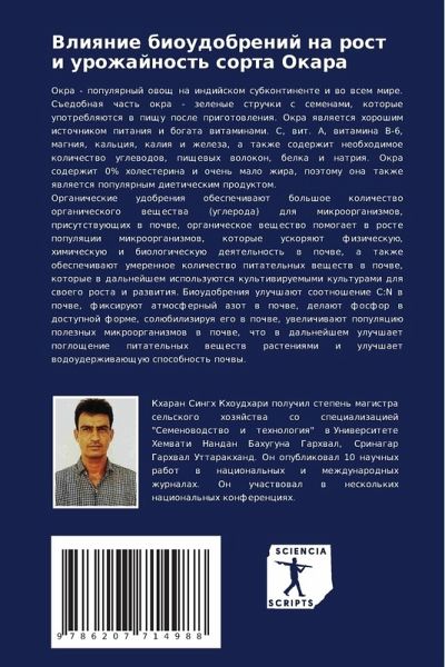 Okra - populqrnyj owosch na indijskom subkontinente i wo wsem mire. S#edobnaq chast' okra - zelenye struchki s semenami, kotorye upotreblqütsq w pischu posle prigotowleniq. Okra qwlqetsq horoshim istochnikom pitaniq i bogata witaminami. C, wit. A, witamina B-6, magniq, kal'ciq, kaliq i zheleza, a takzhe soderzhit neobhodimoe kolichestwo uglewodow, pischewyh wolokon, belka i natriq. Okra soderzhit 0% holesterina i ochen' malo zhira, poätomu ona takzhe qwlqetsq populqrnym dieticheskim produktom.Organicheskie udobreniq obespechiwaüt bol'shoe kolichestwo organicheskogo weschestwa (ugleroda) dlq mikroorganizmow, prisutstwuüschih w pochwe, organicheskoe weschestwo pomogaet w roste populqcii mikroorganizmow, kotorye uskorqüt fizicheskuü, himicheskuü i biologicheskuü deqtel'nost' w pochwe, a takzhe obespechiwaüt umerennoe kolichestwo pitatel'nyh weschestw w pochwe, kotorye w dal'nejshem ispol'zuütsq kul'tiwiruemymi kul'turami dlq swoego rosta i razwitiq. Bioudobreniq uluchshaüt sootnoshenie C:N w pochwe, fixiruüt atmosfernyj azot w pochwe, delaüt fosfor w dostupnoj forme, solübiliziruq ego w pochwe, uwelichiwaüt populqciü poleznyh mikroorganizmow w pochwe, chto w dal'nejshem uluchshaet pogloschenie pitatel'nyh weschestw rasteniqmi i uluchshaet wodouderzhiwaüschuü sposobnost' pochwy.
