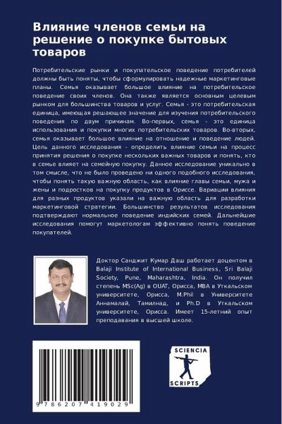 Potrebitel'skie rynki i pokupatel'skoe powedenie potrebitelej dolzhny byt' ponqty, chtoby sformulirowat' nadezhnye marketingowye plany. Sem'q okazywaet bol'shoe wliqnie na potrebitel'skoe powedenie swoih chlenow. Ona takzhe qwlqetsq osnownym celewym rynkom dlq bol'shinstwa towarow i uslug. Sem'q - äto potrebitel'skaq edinica, imeüschaq reshaüschee znachenie dlq izucheniq potrebitel'skogo powedeniq po dwum prichinam. Vo-perwyh, sem'q - äto edinica ispol'zowaniq i pokupki mnogih potrebitel'skih towarow. Vo-wtoryh, sem'q okazywaet bol'shoe wliqnie na otnoshenie i powedenie lüdej. Cel' dannogo issledowaniq - opredelit' wliqnie sem'i na process prinqtiq resheniq o pokupke neskol'kih wazhnyh towarow i ponqt', kto w sem'e wliqet na semejnuü pokupku. Dannoe issledowanie unikal'no w tom smysle, chto ne bylo prowedeno ni odnogo podobnogo issledowaniq, chtoby ponqt' takuü wazhnuü oblast', kak wliqnie glawy sem'i, muzha i zheny i podrostkow na pokupku produktow w Orisse. Variacii wliqniq dlq raznyh produktow ukazali na wazhnuü oblast' dlq razrabotki marketingowoj strategii. Bol'shinstwo rezul'tatow issledowaniq podtwerzhdaüt normal'noe powedenie indijskih semej. Dal'nejshie issledowaniq pomogut marketologam äffektiwno ponqt' powedenie pokupatelej.