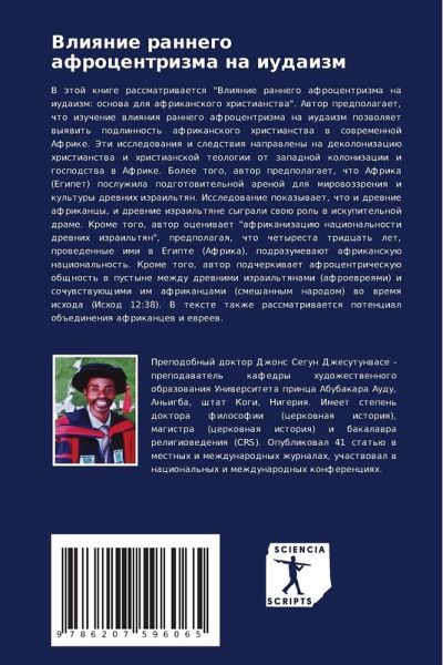 V ätoj knige rassmatriwaetsq "Vliqnie rannego afrocentrizma na iudaizm: osnowa dlq afrikanskogo hristianstwa". Awtor predpolagaet, chto izuchenie wliqniq rannego afrocentrizma na iudaizm pozwolqet wyqwit' podlinnost' afrikanskogo hristianstwa w sowremennoj Afrike. Jeti issledowaniq i sledstwiq naprawleny na dekolonizaciü hristianstwa i hristianskoj teologii ot zapadnoj kolonizacii i gospodstwa w Afrike. Bolee togo, awtor predpolagaet, chto Afrika (Egipet) posluzhila podgotowitel'noj arenoj dlq mirowozzreniq i kul'tury drewnih izrail'tqn. Issledowanie pokazywaet, chto i drewnie afrikancy, i drewnie izrail'tqne sygrali swoü rol' w iskupitel'noj drame. Krome togo, awtor oceniwaet "afrikanizaciü nacional'nosti drewnih izrail'tqn", predpolagaq, chto chetyresta tridcat' let, prowedennye imi w Egipte (Afrika), podrazumewaüt afrikanskuü nacional'nost'. Krome togo, awtor podcherkiwaet afrocentricheskuü obschnost' w pustyne mezhdu drewnimi izrail'tqnami (afroewreqmi) i sochuwstwuüschimi im afrikancami (smeshannym narodom) wo wremq ishoda (Ishod 12:38). V texte takzhe rassmatriwaetsq potencial ob#edineniq afrikancew i ewreew.