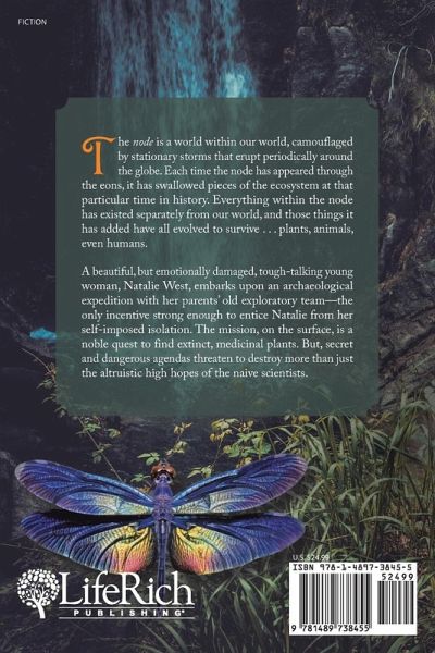 The node is a world within our world, camouflaged by stationary storms that erupt periodically around the globe. Each time the node has appeared through the eons, it has swallowed pieces of the ecosystem at that particular time in history. Everything within the node has existed separately from our world, and those things it has added have all evolved to survive . . . plants, animals, even humans. A beautiful, but emotionally damaged, tough-talking young woman, Natalie West, embarks upon an archaeological expedition with her parents' old exploratory team-the only incentive strong enough to entice Natalie from her self-imposed isolation. The mission, on the surface, is a noble quest to find extinct, medicinal plants. But, secret and dangerous agendas threaten to destroy more than just the altruistic high hopes of the naive scientists.