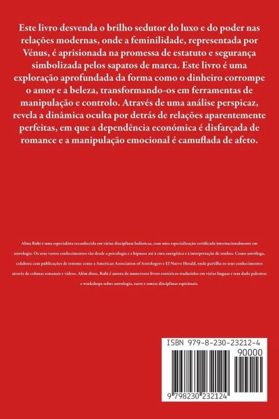 Este livro desvenda o brilho sedutor do luxo e do poder nas relações modernas, onde a feminilidade, representada por Vénus, é aprisionada na promessa de estatuto e segurança simbolizada pelos sapatos de marca. Este livro é uma exploração aprofundada da forma como o dinheiro corrompe o amor e a beleza, transformando-os em ferramentas de manipulação e controlo. Através de uma análise perspicaz, revela a dinâmica oculta por detrás de relações aparentemente perfeitas, em que a dependência económica é disfarçada de romance e a manipulação emocional é camuflada de afeto.