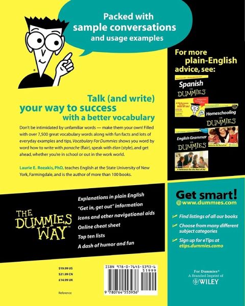Vocabulary For Dummies doesn't overwhelm you with endless word lists. Instead, it gives you a complete vocabulary-building program that familiarizes you with words from all areas of life as they're used in context-from bar mitzvahs to business meetings, PCs to politics-with a host of fun features, including: