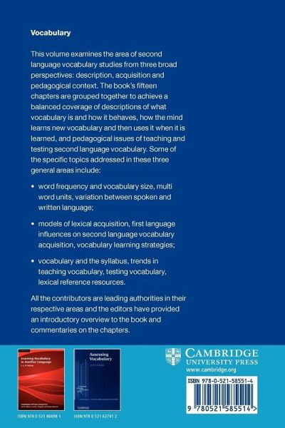This book examines what vocabulary is and how it behaves, how the mind learns and uses it, and the pedagogical issues of teaching and testing L2 vocabulary.