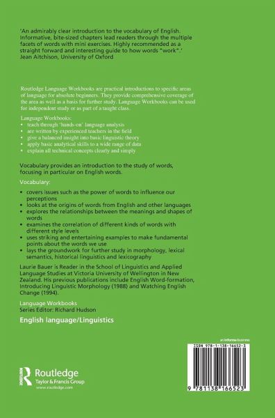 Routledge Language Workbooks are practical introductions to specific areas of language for absolute beginners. Vocabulary provides an introduction to the study of words, focusing in particular on English words.